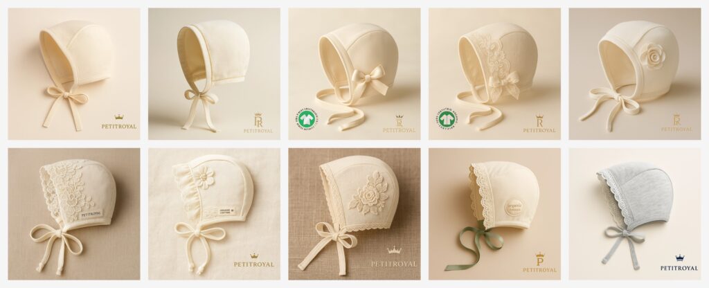 Set Mützchen Bio-Bonnet-Creme mit Kleidchen Creme mit Taufkleid Elodie mit Spitzenärmeln